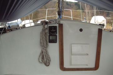 Čelen nerez a teak, oko na genakr, výtah na genakr, spinakr peň