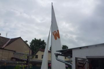 - kompletní plachetnice s plnou výstrojí (skládací 2dílný stěžeň, 1x ráhno,1x kormidlo s pínou,