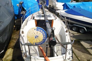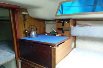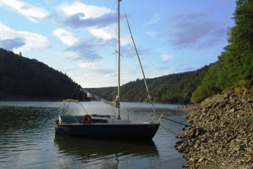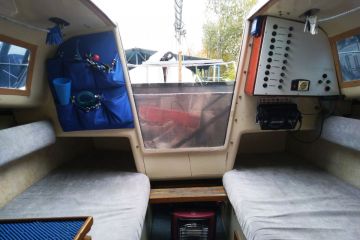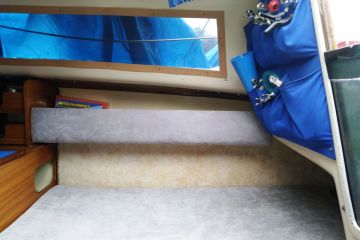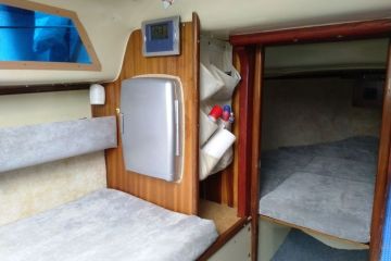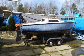 Prodám kajutovou plachetnici délka 6,20m, šířka 2,25m .4 lůžka, zásobník vody 50l v přídi, dřez s tekoucí vodou, elektrickou ledničkou, solární panel 40W,hloubkoměr, jedna sada plachet,bimini stříška. Motor Mercury F5MLH s dobíjením 5A stáří 7let málo používaný, dvounápravový vlek bez TP.