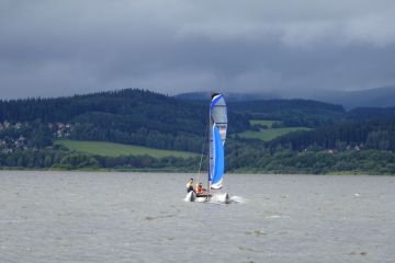 Prodám skládací katamarán MINICAT 420 Emotion. Koupena v roce 2014. Na vodě má najeto cca 25 dní. Jde o loď ve vynikajícím stavu. Uveze 4 osoby. Celá loď sbalená ve dvou taškách 175x30x30cm. Váha celkem 52 kg. Prakticky téměř nepoužitý. K provozu není nutné žádné oprávnění, či licence. Za mírného větru ho mohou ovládat i děti. Vhodné i pro úplné začátečníky.