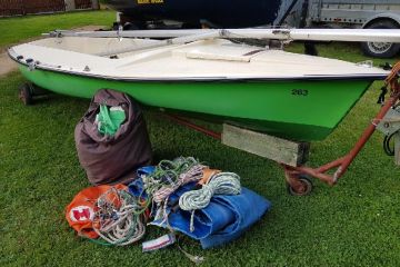Nabízím laminátovou sportovní plachetnici Jollku Achat 420. Plachetnice je ve slušném stavu a plně plavby schopná. Hlavní plachta a kosatka v perfektním stavu a plocha plachet 11,8metru. Veškeré příslušenství je kompletní včetně starší krycí plachty a manipuláku. Pouze lehce poškozený spodek lodi (viz. foto) od traileru ale na plavbu nemá vliv. Více vysvětlím po telefonu nebo osobně. Více foto mohu zaslat přes whatsapp. Po dohodě mohu za cenu phm dopravit. Okr Beroun.