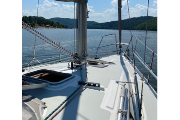Phobos 27 - moderní kajutová plachetnice Vychází z nadčasového designu s charakteristickou dlouhou linií oken. Tato loď se pyšní bohatou výbavou, vestavěným motorem a přívěsem v ceně. rok výroby 2011 délka 8,09m šířka 2,86m ponor 1,40m, sklopný kýl pohon: vestavěný motor SOLE MINI DIESEL 17, r.v. 2014, výkon 11,80kW přívěs: 3500kg počet osob na plavidle: 5-8 Výbava této plachetnice: kuchyňka: nerezový dřez, teplá/studená voda, lednice s přístupem shora, plynový vařič - dvouplotýnka (P/B) koupelna: sprcha, umyvadlo, teplá/studená voda, záchod mořský (mechanický) salon: rozkládací dřevěný stůl, po obou stranách lavice, k lavicím snadno instalovatelné nástavce (včetně polstrování), rozšiřující na široká lůžka po obou stranách stolu dostatek úložných prostor nad i pod lavicemi šedomodré textilní polstrování ve velmi zachovalém stavu, polštářky s logem led osvětlení (přímé i nepřímé) přední kajuta: otevřená do salonu, lůžko do "V" zadní kajuta: otevřená do salonu, lůžko do "L" technická výbava: bojler na teplou vodu rozvod el. 220V rozvod el. 12V přepěťová ochrana rádio/CD, reproduktory v salonu i v kokpitu vpředu kotva na vrátku (ruční) vzadu přídavná sklopná kotva na laně s bubínkem kokpit/paluba: kormidlo, na kormidelním sloupku přístrojový panel paluba a sedačky kryty napodobeninou teaku polstrování na lavice v kokpitu demontovatelný plastový stolek kočárek skládací bimini badeplato se schůdky do vody (nerez, dřevěné nášlapy), u schůdků sprcha fendry 4ks nová lana vázací (2020) a otěže k přední plachtě (2021) na přídi dřevěné sedátko s nerezovými skládacími schůdky do vody plachty: sklopný stěžeň hlavní plachta klasická, s refy a spírami gena rolovací na předním pevném stěhu s rolfokem genakr na samostatném stěhu (ocelové lanko) s nezávislým rolfokem elektronika: kompas, windmetr, hloubkoměr, autopilot solární panel na zadní nástavbě 2 baterie (2017) Odpočet DPH není možný. Prodej přímo od majitele.